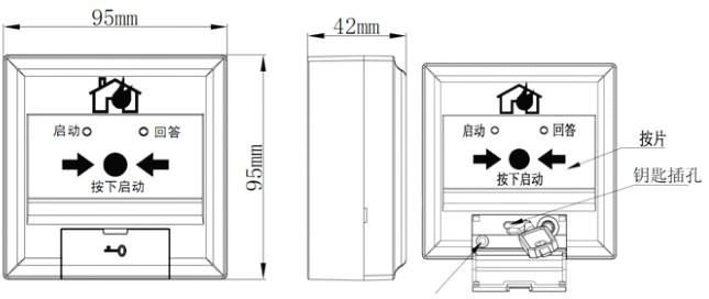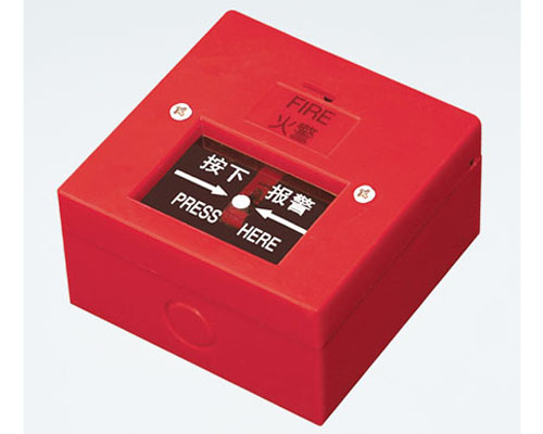 上图为普通型消火栓按钮,如图所示按钮中没有启动和回答指示灯,只有一块玻璃,玻璃破碎时报警触点就会启动,从而达到报警功能。