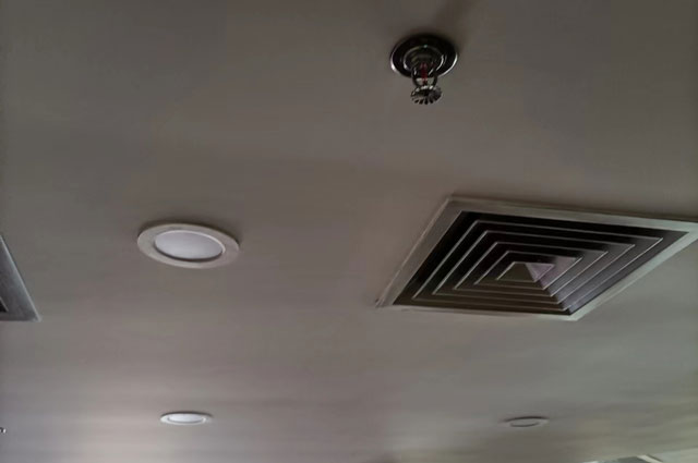 5.塑料孔罩。火灾发生时,喷头附近贴附在天花板上的装饰用塑料环板会在喷头启动前熔化;在有些情况下,熔化的塑料确实会堵塞喷头。